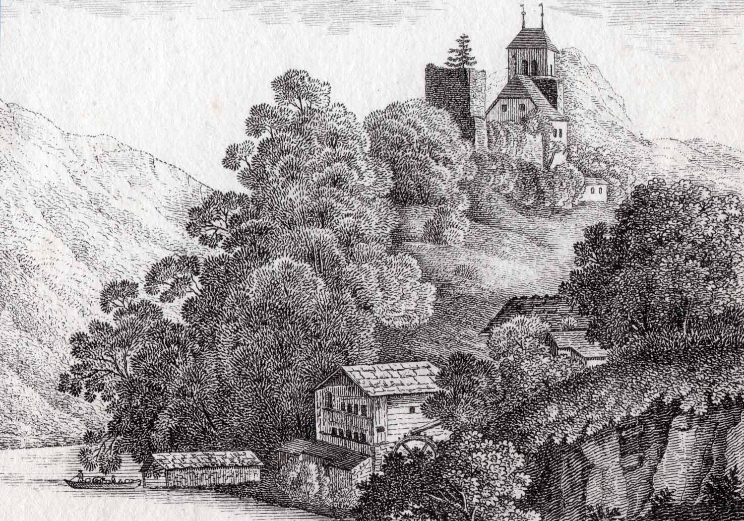 wurde die hölzerne Mühle von den damaligen Brüdern, Melchior, Mathäus und Johannes Grossmann abgebrochen und an gleicher Stelle die «neue Mühle» in massivem Steinbau aufgebaut.